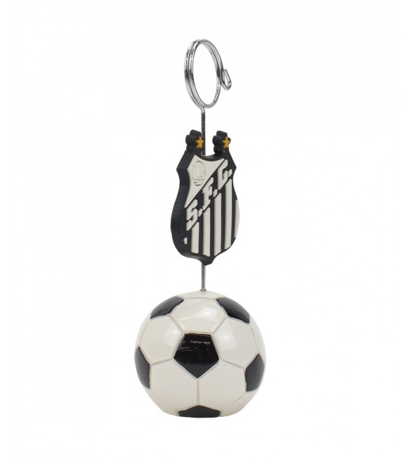 Porta cartão do Santos, a base é uma bola nas cores do time, e em cima tem o brasão do seu time de coração. Use-o para guardar os cartões de visita, também pode ser usado para deixar lembretes. Material: metal e plástico