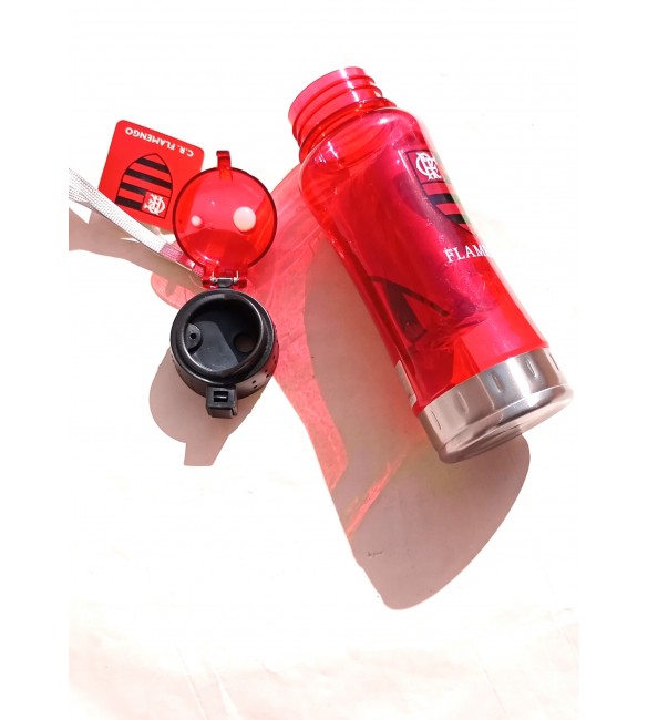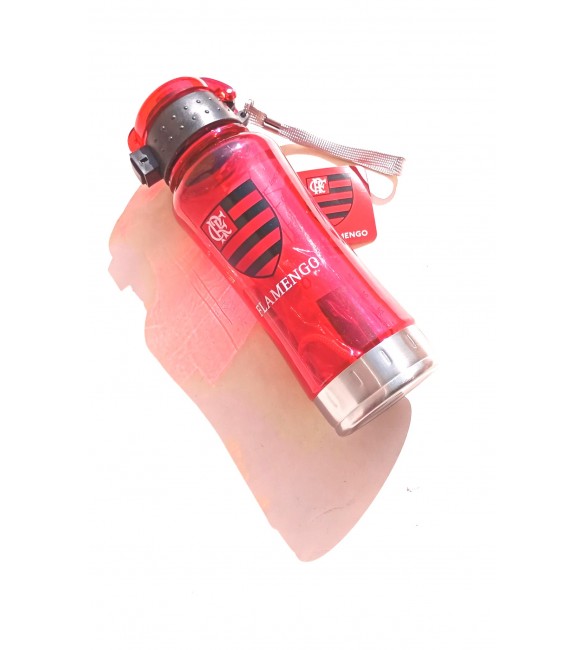 Garrafa Plástico e Inox Squeeze do Flamengo 600ml Garrafa de plástico com parte revestido de inox. Na cor e com brasão do Flamengo . Vem com tampa e cordao. Material: plástico e inox;