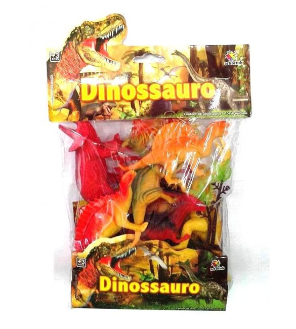 Dinossauro Cores sortidas - Saquinho 01 unidade contem 06 dinossauros e 04 acessorios