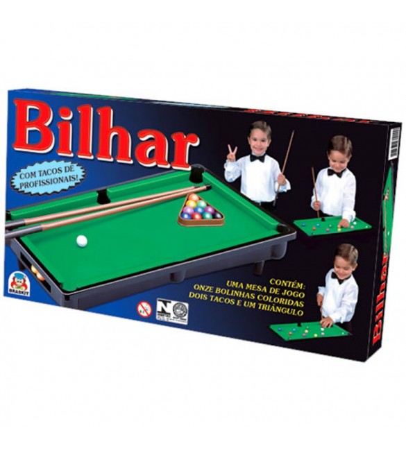 Chame os amigos e comece a brincadeira. O jogo de bilhar é super divertido e você pode jogar com toda a turma. Possui tacos com pontas emborrachadas. Uma brincadeira divertida que vai entreter, divertir e animar adultos e crianças. Entre nessa disputa e mostre quem é o grande vencedor do bilhar.