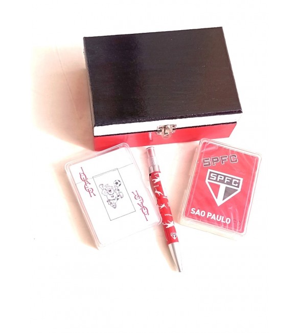 Kit Torcedor São Paulo 01 caixa MDF + 02 Baralhos + 01 caneta