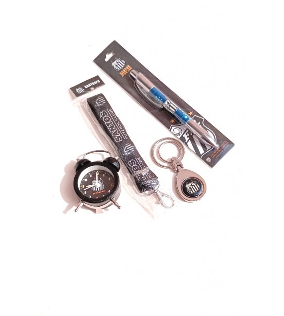 Kit torcedor do Santos mini despertador + cordão+ Caneta + Chaveiro