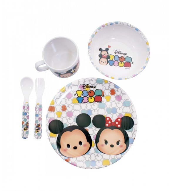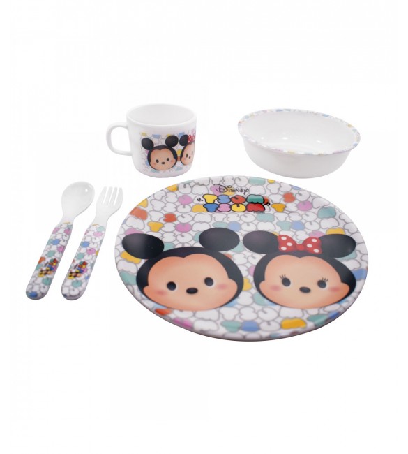 Jg De Refeição Infantil De Melamina Mickey & Minnie Branco Tsum Tsum - Disneyy 5 peças