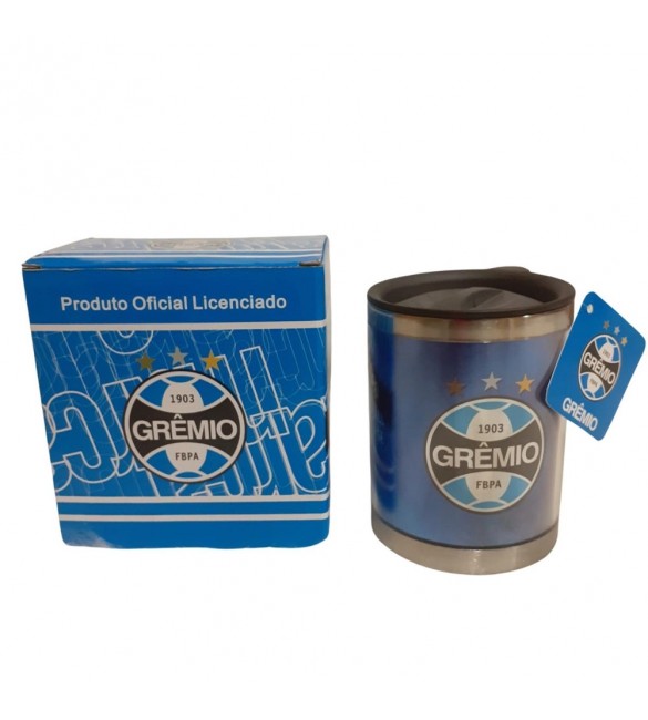 Elegante caneca térmica com revestimento externo de plástico e interior de inox para manter a bebida bem gelada. Vem com tampa e estampa interna nas cores e brasão do Gremio. Material: plástico e inox; Litragem: 450ml!