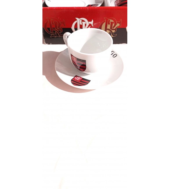 Jogo com 2 xícaras e 2 pires de porcelana. O brasão do Flamengo vem estampado tanto nas xícaras como nos pires. Perfeito para tomar o café após o almoço no estilo do seu time de coração. Material: porcelana; Litragem: 70 ml cada xícara
