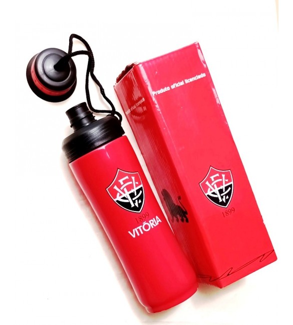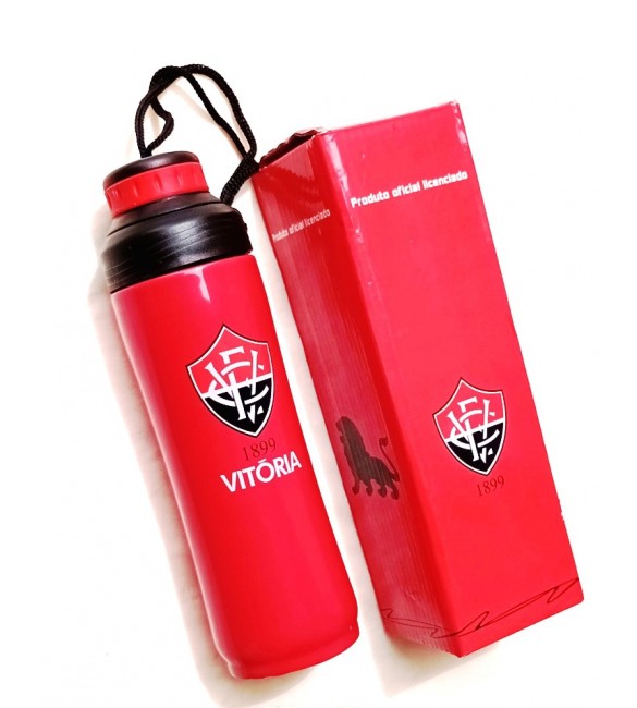 Garrafa de inox. Na cor e com brasão do vitoria. Vem com tampa .Garrafa térmica de inox com capacidade para 500 ml. Vem na cor e gravada com escudo do Vitoria. Tampa rosqueável . Material: inox
