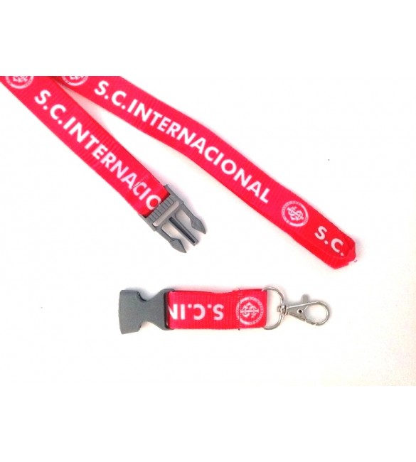 Cordão customizado do internacional para carregar crachá ou garrafa. Material: poliéster