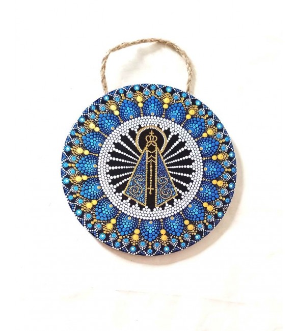 Mandala Nossa Senhora Aparecida .Feita em Cerâmica / Porcelana Imagem de Alta qualidade ,Pintura com detalhes em dourado 16cm de circunferência Material Resistente com fio de corda para pendurar.