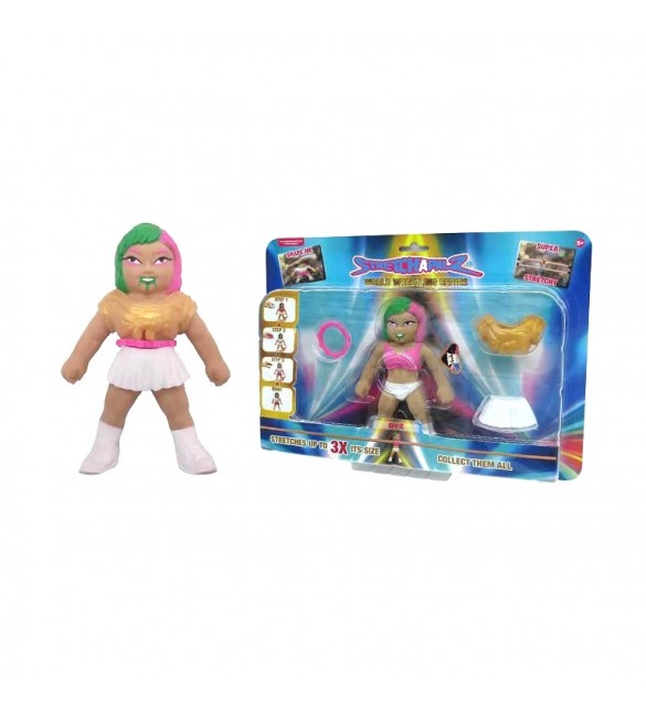 A série Luta Mundial Stretchapalz são lutadores elásticos super divertidos que você pode esticar várias vezes! Cheios de areia natural por dentro, esses lutadores colecionáveis se estendem até 3 vezes o seu tamanho! Você pode esticar seu lutador em quase qualquer forma que você possa imaginar e ele retornará à sua forma normal! Ótimo para brincadeiras imaginativas e nutrir as habilidades motoras finas do seu filho. Existem vários personagens únicos para colecionar! Cada figura possui 14cm de altura. Imagem meramente ilustrativa. As cores dos acessórios são sortidas e aleatórias. Código de Referência: 3210 Marca: Sunny Série: World Wrestling Series Modelo: Boneco Super Elastico Luta Livre Stretchapalz Idade: +5