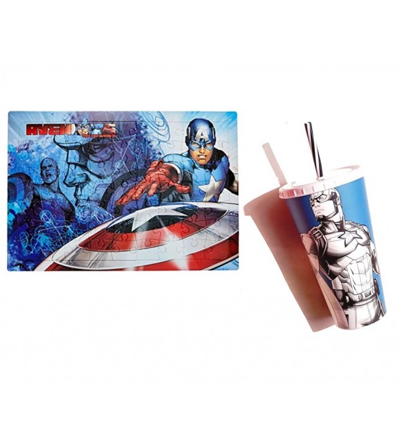 kit Quebra Cabeça Advengers 63 Peças+Shakeira Capitão América 580 Ml