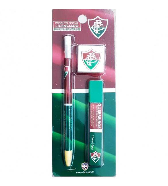 Incrível jogo escolar com uma lapiseira grafite 2B de 2.0 mm, borracha e 6 grafites para lapiseira, tudo com a cor e customização do fluminense. O topo da lapiseira ainda funciona como um apontador para o grafite, mantendo a ponta da lapiseira sempre pronta para escrever. Material: plástico Marca: Mileno (Produto Licenciado)