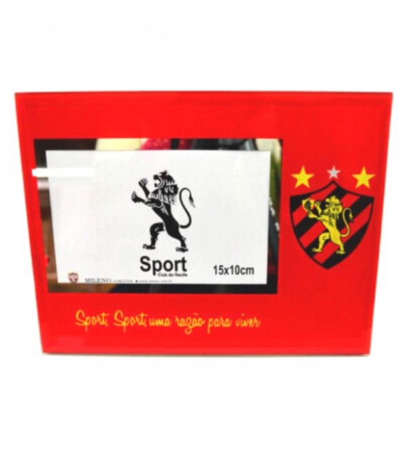 Porta retrato de moldura de metal com estampa e cores do Sport. Capacidade para 1 foto 10 x 15 cm, para você guardar suas melhores recordações.