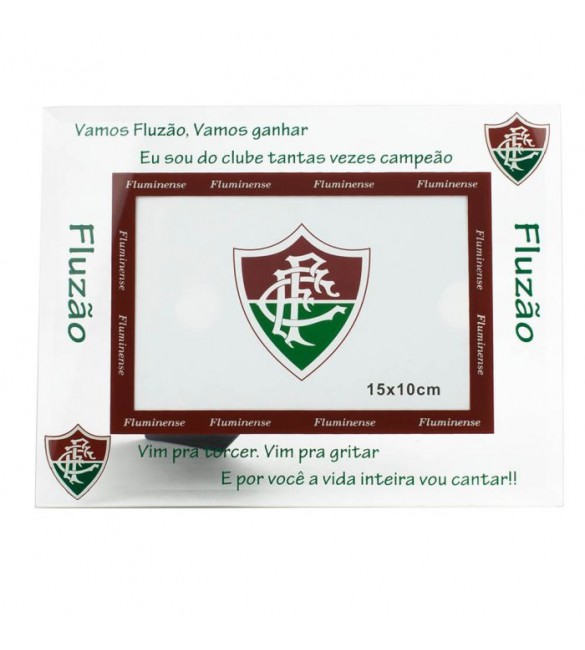 Porta retrato de moldura de vidro com estampa e cores Fluminense. Capacidade para 1 foto 10 x 15 cm, para você guardar suas melhores recordações.